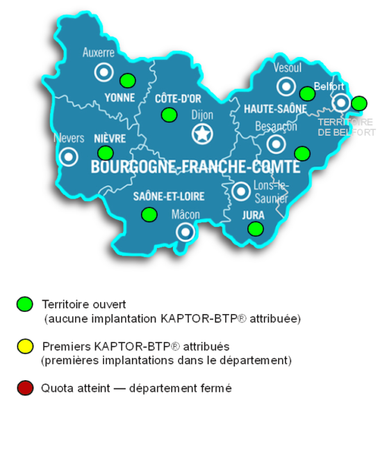 Le déploiement KAPTOR-BTP® dans la région Bourgogne-Franche-Comté est organisé département par département.