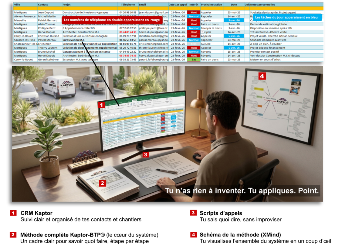 - 1 petit chantier → 2 000 € → méthode remboursée