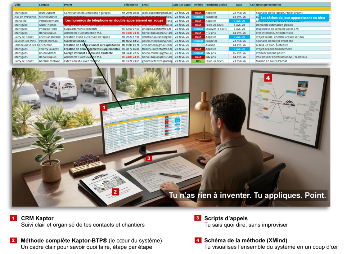 👉 Si tu n’as pas encore vu la vidéo d’introduction, prends 5 minutes pour comprendre l’origine de KAPTOR-BTP®.
